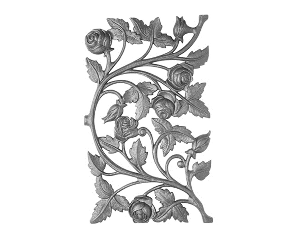 PRODUCT DESCRIPTION Cast Iron Casting, Short Rose Design, Double Faced. 8-7/8"W, 14-5/8" H 5 lbs