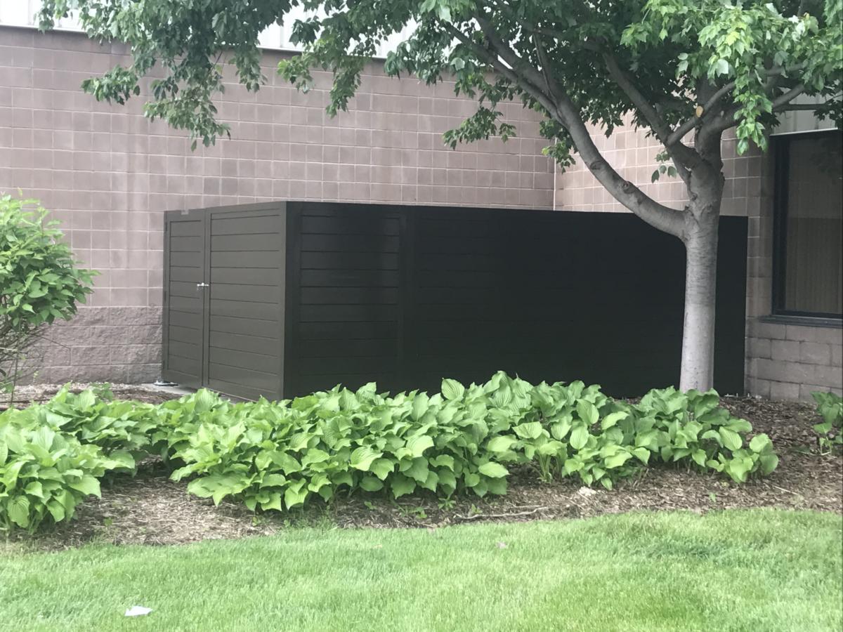 PalmSHIELD's AUGUSTUS architectural solid is an upscale solution for attractive rooftop mechanical equipment screening and standalone ground screens. PalmSHIELD's architectural solid screening is unlike any other screen or fencing product. Our panels provide a substantial presence and professional appearance, complementing your building's or roof's exterior finishes. All of our screen walls include the option for matching swing and slide gates. PalmSHIELD architectural solid screening is fully fabricated. It consists of full fabricated structural framed panels and individual columns. Incorporating our popular picture frame design, our panels are fabricated using proven structural aluminum profiles for the picture frame that supports the tongue and groove planks on all four sides. Everything is extruded to fit together using only on-site mechanical means to assemble. All aluminum components are media blasted and powdered coated. All gates are fully assembled.