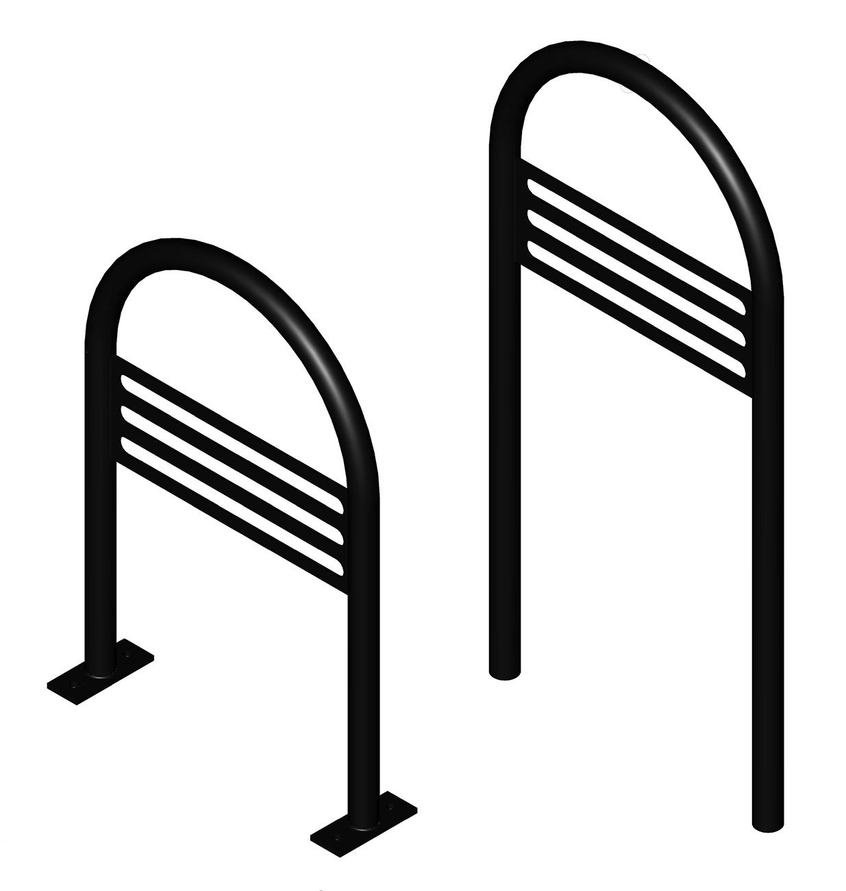 CycleSafe Modern Racks™ incorporate the functional design features of the Bike U Rack with Crossbar with a contemporary flair. Designed to blend in with modern streetscapes or accent traditional environments, Modern Bike Racks complement any streetscape as decorative urban art to encourage eco-friendly transportation.