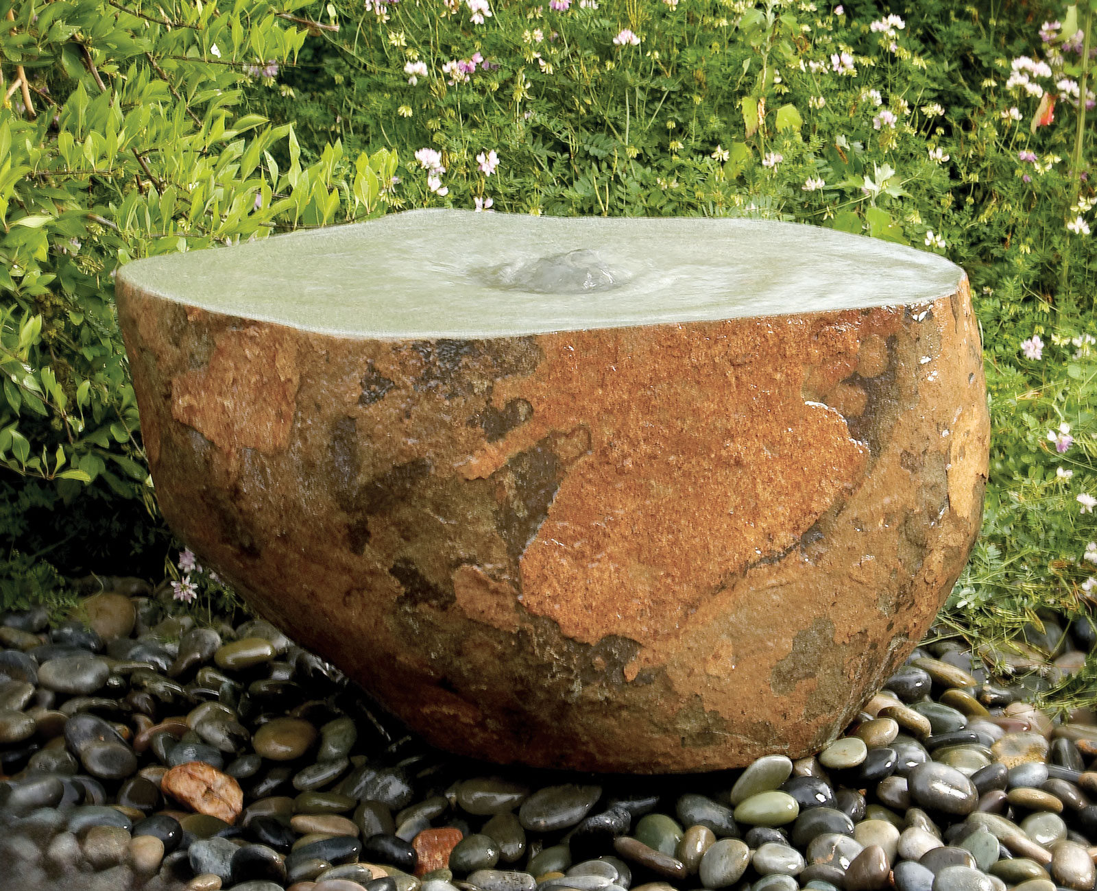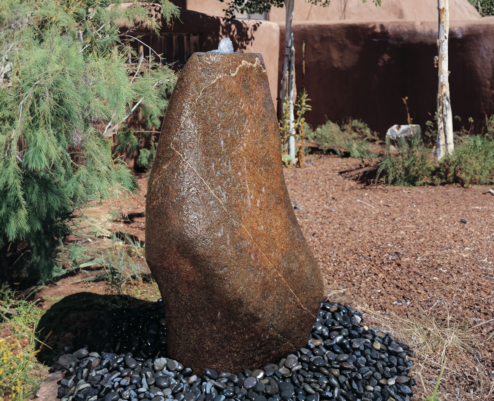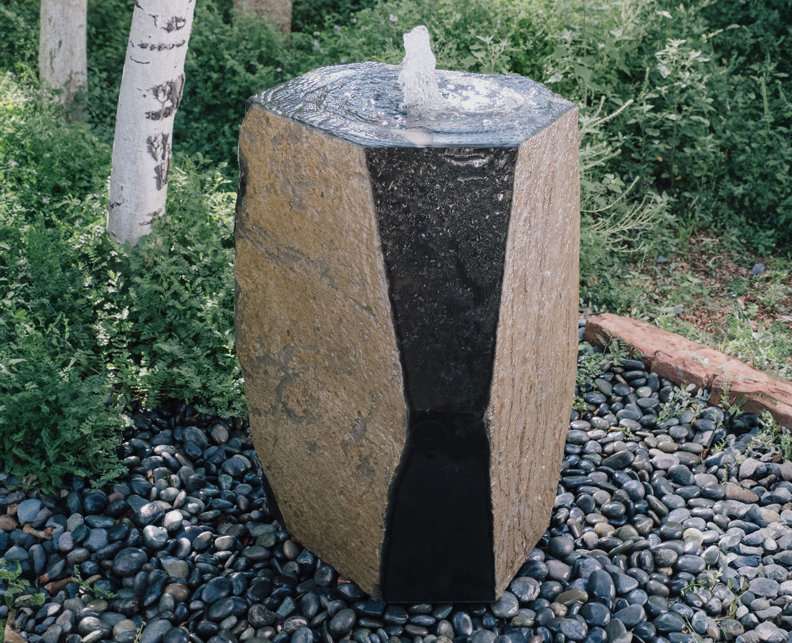 The Water Table Fountain is carved from a large block of Grey Granite. The top is polished while the outside is rough chiseled