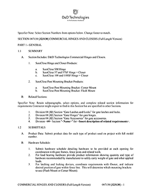 Sure Close Ready Fit Gate Hinge Specifications & Warranty