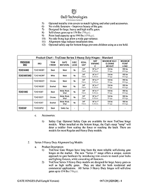 TruClose Regular Gate Hinge Regular Specifications & Warranty