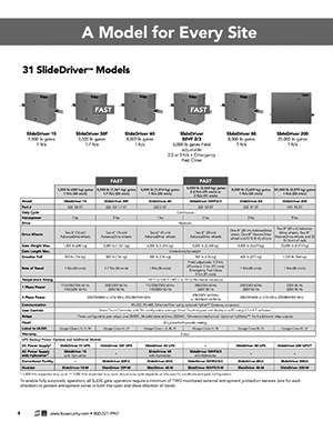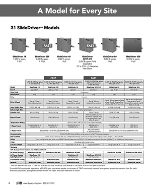 SLIDEDRIVER delivers uncompromising quality to commercial and industrial customers worldwide, where security, ease of use, reliable operation and low maintenance is expected. Fully-enclosed hydraulic motors turn compressed polyurethane AdvanceDrive™ wheels that grip a rigid drive rail and produce smooth gate travel. A self-contained, 12 gauge, zinc plated steel chassis with ultra-durable (TGIC) polyester powder coat provides excellent abrasion resistance and an enduring, attractive finish.