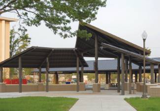 Bold & innovative designs that are Uniquely Litchfield! The modern looking Custom All-Steel Model Peaked Square Shelter features 24 gauge steel metal roof panels & square banded steel columns.