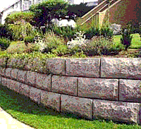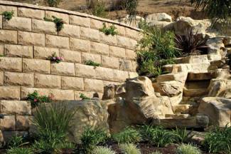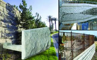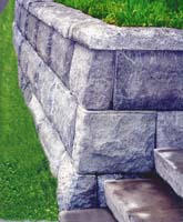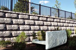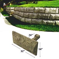 Lock+Load is made of reinforced concrete. Lock together and Load with soil to create a Lock+Load stone with 16" x 32" quarried stone face. For garden walls or with geo-grid in taller walls, Lock+Load is simply built by hand.