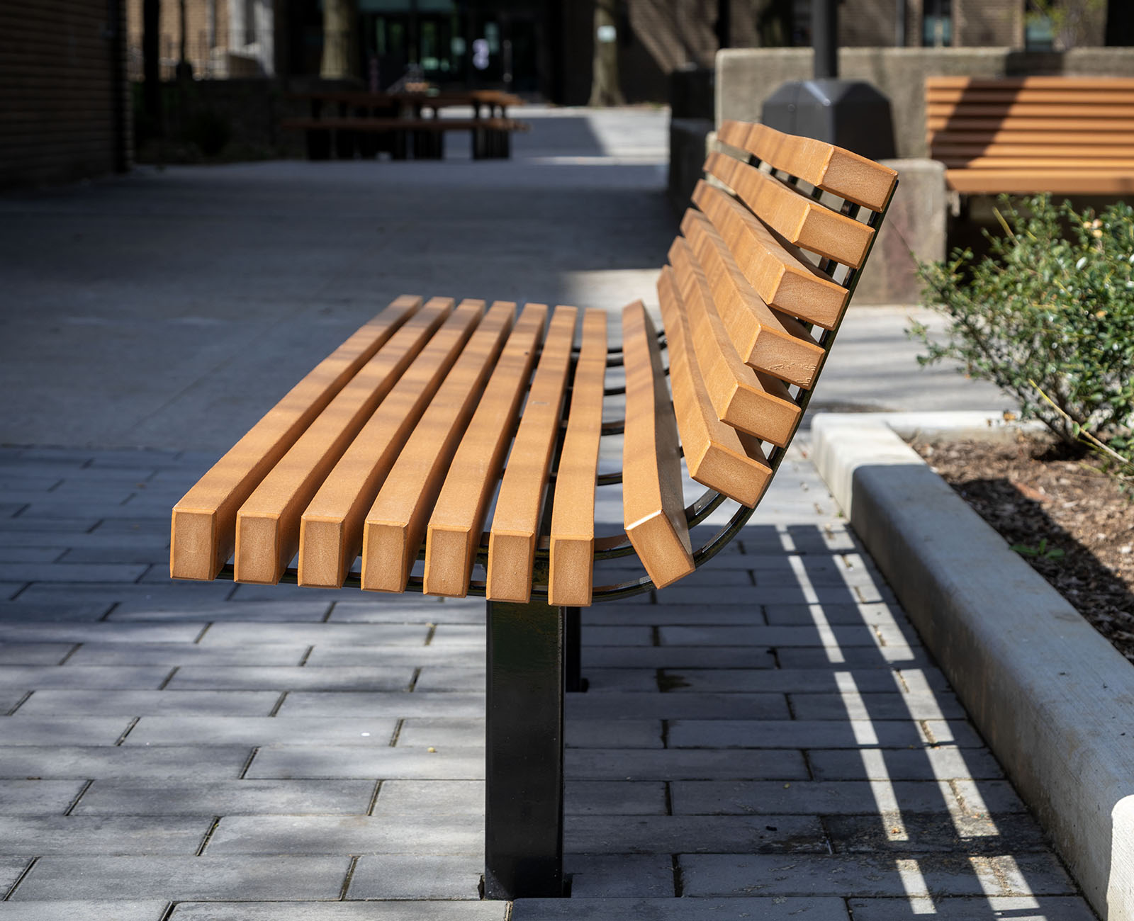Nothing warms up a site and the people who use it like the natural beauty of wood furnishings, especially durable, graceful furnishings from Sitecraft. These custom benches were created for 80 LaSalle Street in Manhattan NY.