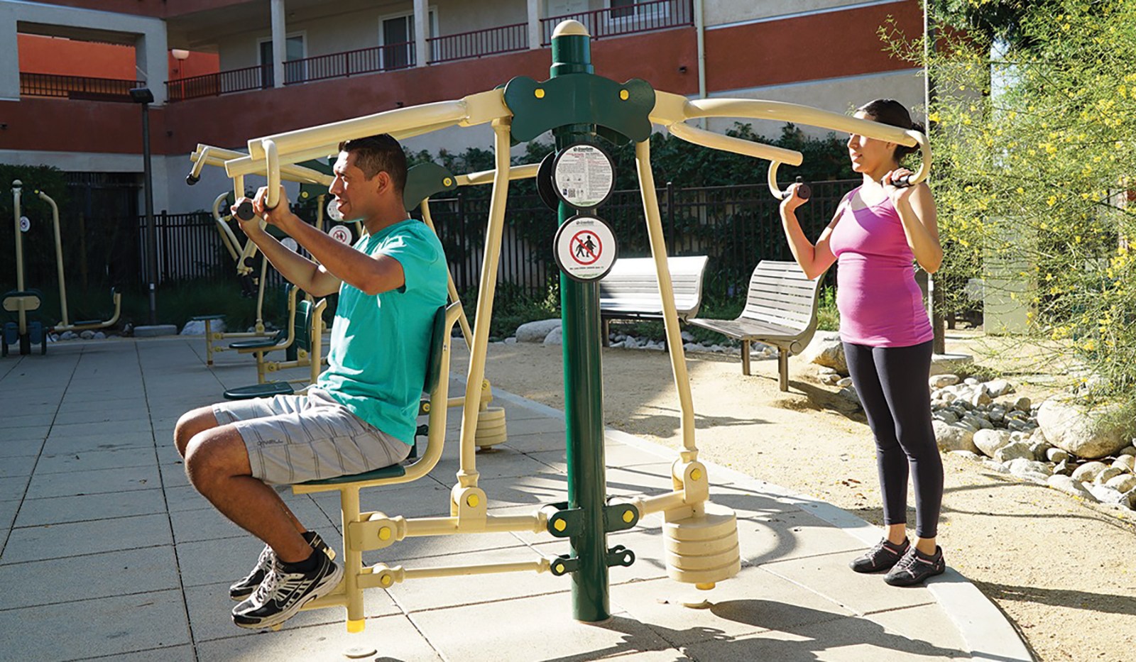 Greenfields' Medium Sample Package 1 package allows for 27 users on just 10 units. Units such as the 3-Person Static Combo provide moderate to advanced-level workouts, while other stations cater to entry-level users.