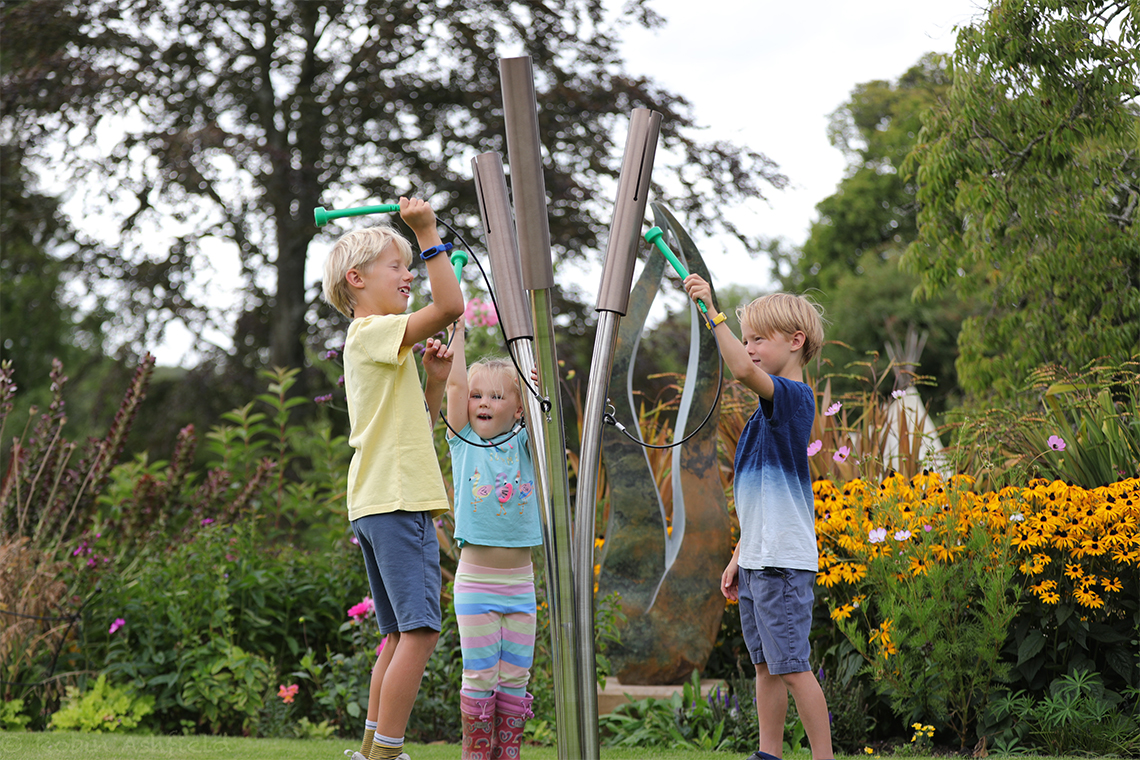 A-Minor Pentatonic (Set of 6) - A3, C3, D3, E3, G3, A4. Whether you call them cattails, reeds, or bullrushes, these sleek chimes are instantly recognizable as the slender marsh plant with tall stems and dark brown velvety heads. Stainless-steel ‘stems' support the three or six light bronze cylindrical anodized aluminum chimes, which produce tranquil and harmonic sounds when struck with small soft green mallets. Perfect for playful interactions along nature trails, in parks, or in woodlands, citizens can stop and enjoy a moment of musical mindfulness while exploring the great outdoors. Cattail Chimes are sent with two different end caps for you to choose from. Closed-end caps for a flush finish (as shown in the images of the set of three chimes) and pointed end caps to replicate the staminate of the cattail (as shown in the image of the set of six chimes). Both will prevent debris from entering the chime and affecting the sound produced.
