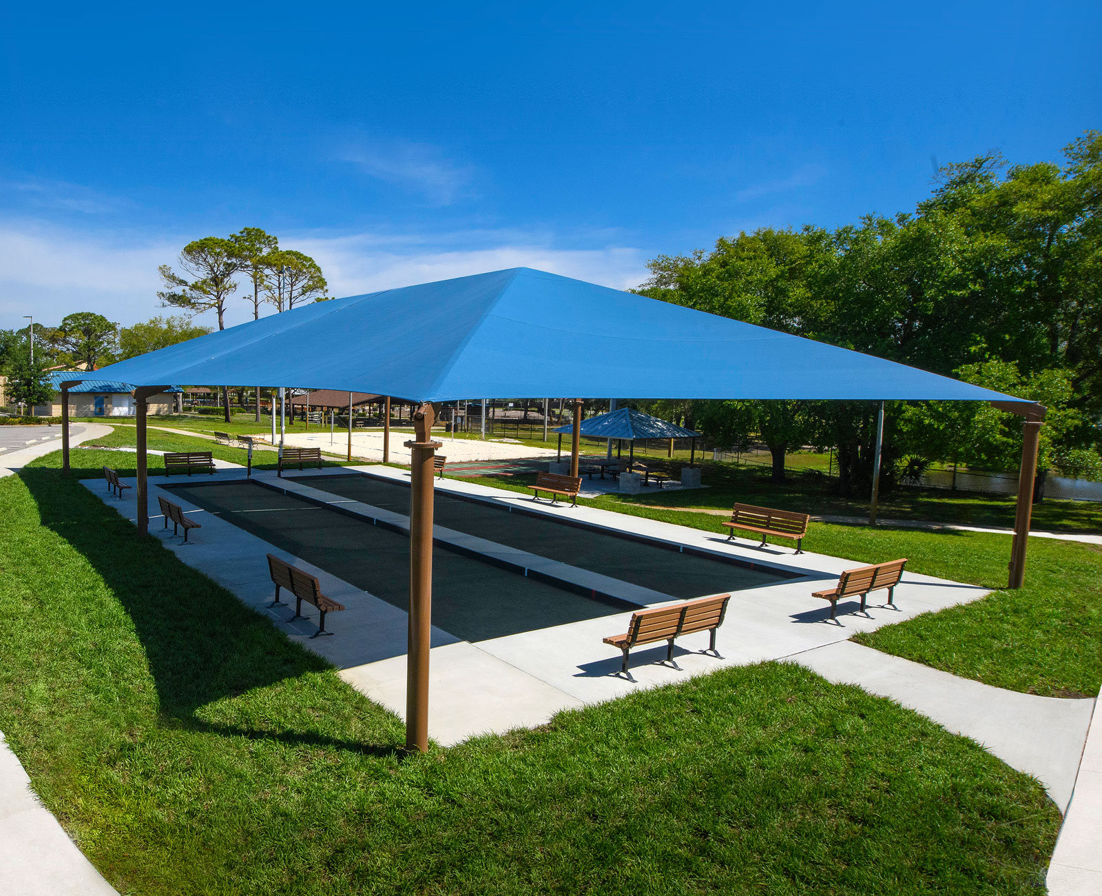 Shade Systems™ has many fabric shade structures and canopies which are perfect for providing much-needed shade and sun protection at water parks, theme parks, and pool facilities.