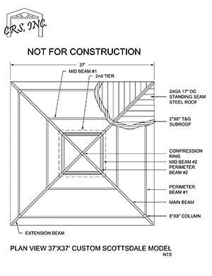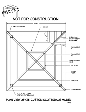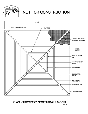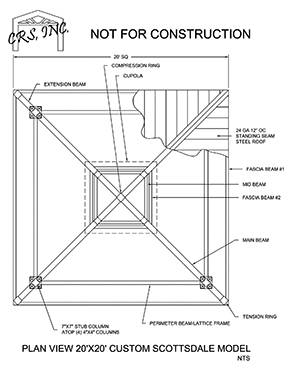 This popular model is especially efficient with a functional 2nd tier, facilitating a pleasant airflow on those warm summer days. The Scottsdale model is easily dressed up with masonry stonework, multiple columns, and ornamentation. Popular architectural style. 2nd tier standard. Increased air circulation. Available in square or rectangle. Nearly any size is available both standard and custom. Measured eave to eave.