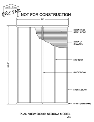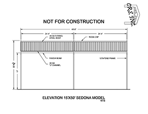 The Sedona shade structure model is based on the same architectural footprint as the Biltmore and Country Garden models. Rectangular steel frames bolted to columns. Nearly any size is available both standard and custom. Heavy duty columns and frame. Sunrise gable end design. Columns placed on the extreme corners to allow more interior space. Measured outside to outside of frame.