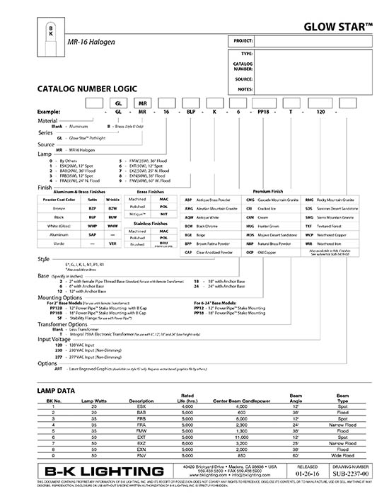 Glow Star™ Halogen MR16 Path Light Specs & Photometrics