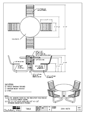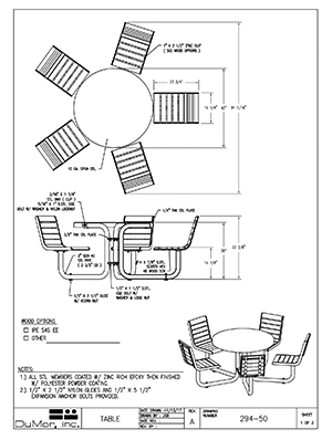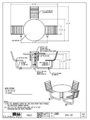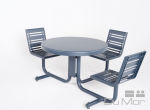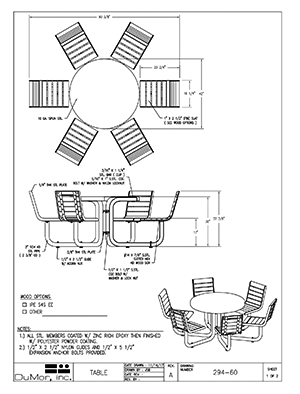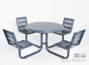42" round surface, 3 seat to 6 seat options. Three seat version meets ADA wheel chair accessible standards. Ipe wood and steel seating available. DWG and CSI format specifications are found on the product page. Registration is required.