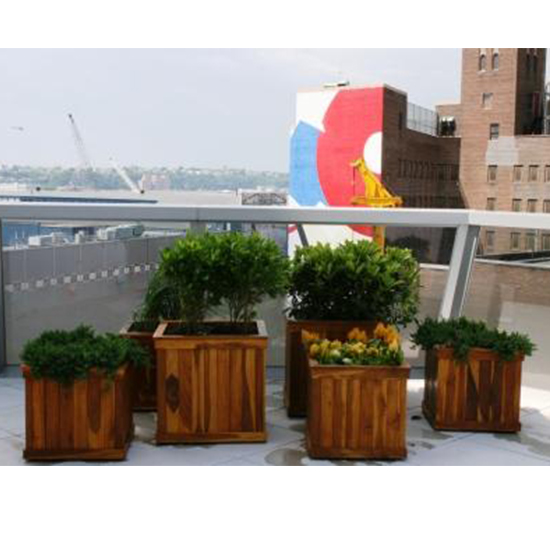 * Holes in the base as well a teak footings underneath provide great drainage in outdoor settings.