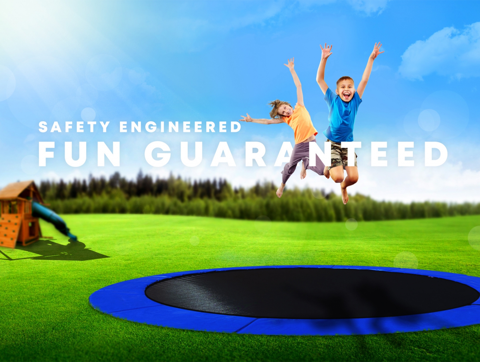 Have fun on our top quality, American-made, in-ground trampoline system that's designed and engineered to be installed at ground level. The result is the safest, most fun and aesthetically pleasing trampoline on the market!
