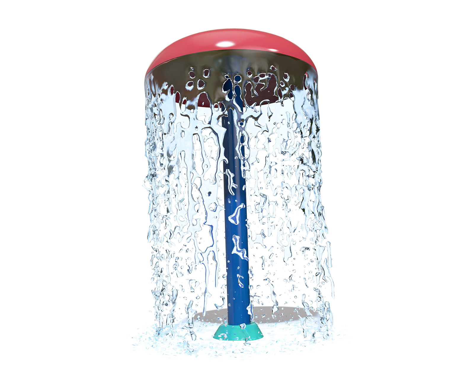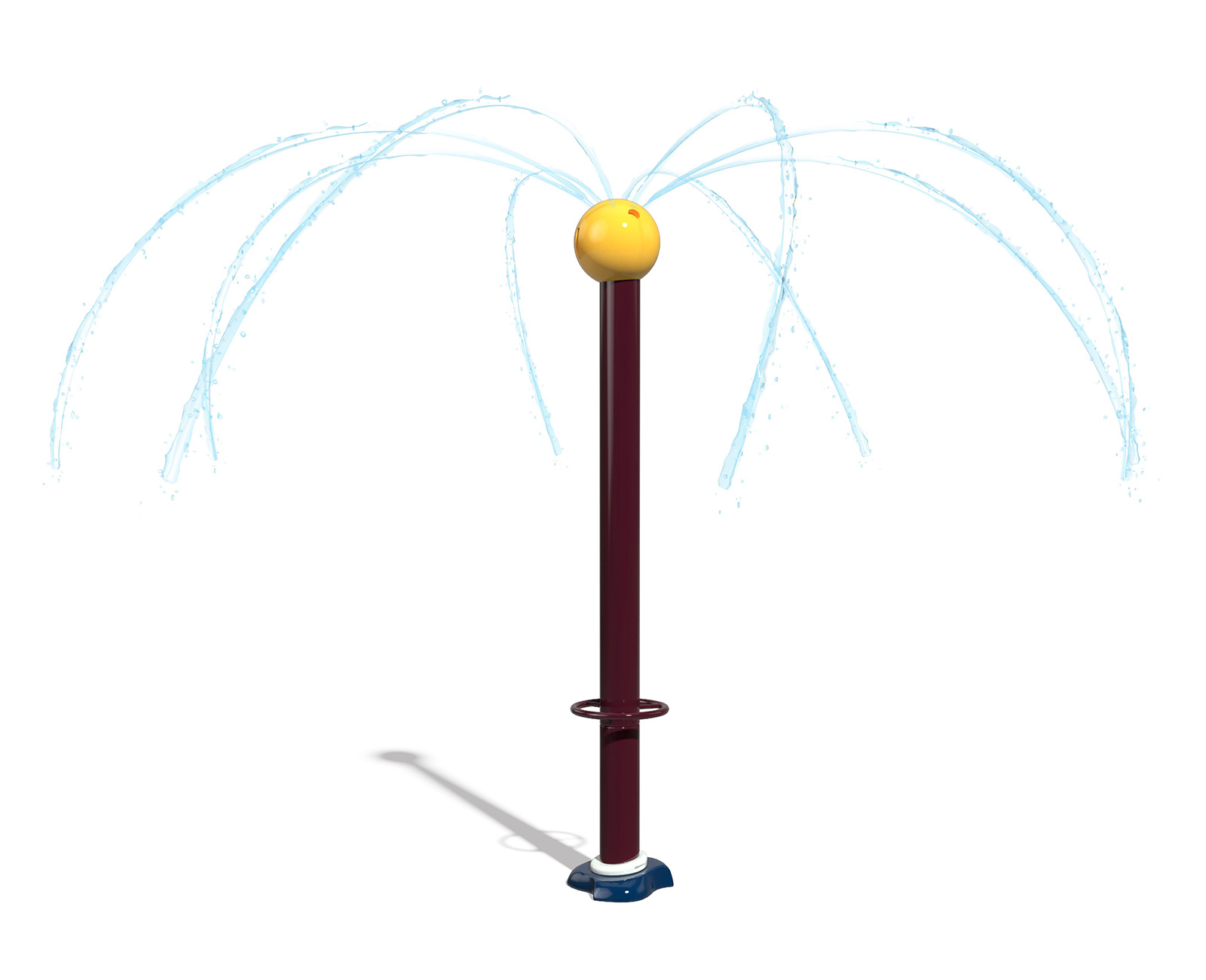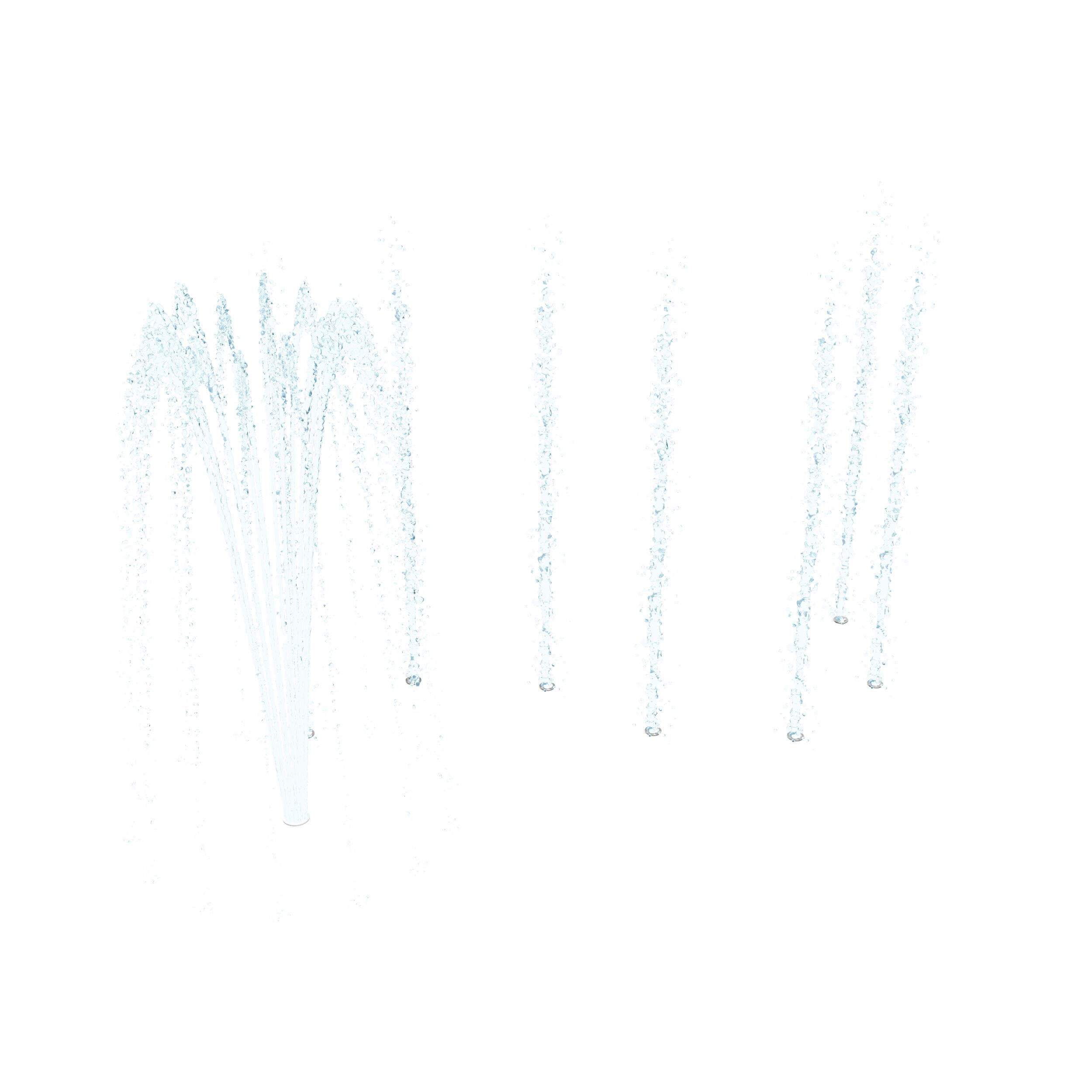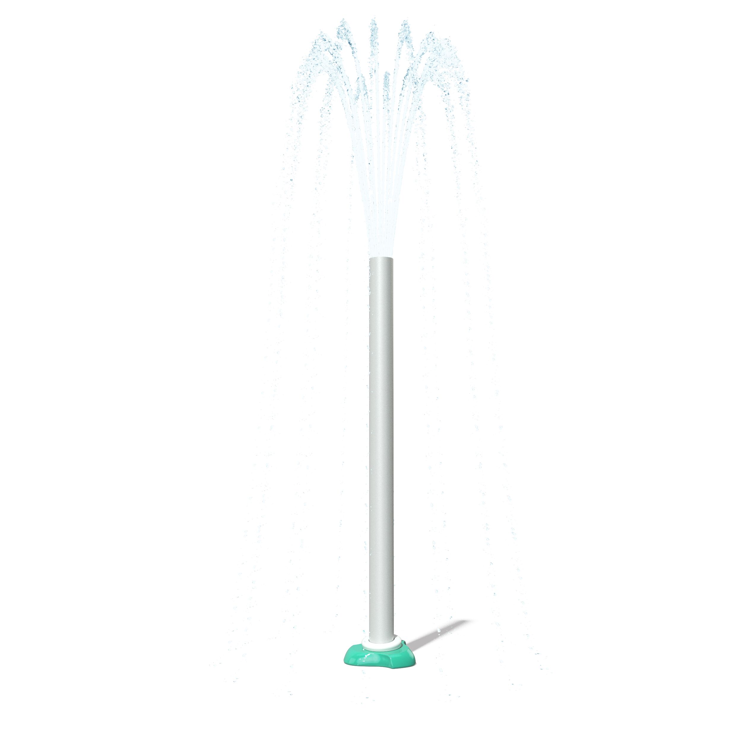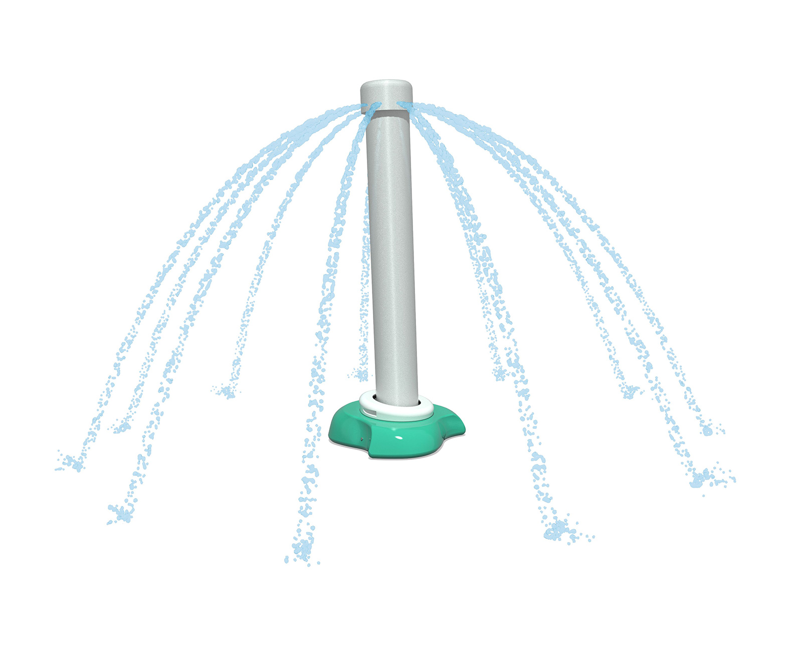 The Center Pillar Ring is a ground spray element that emits twelve (12) vertical streams of water from a 3ft diameter ring. In the center is a single stream jet spraying 5ft upwards. Users work together to plug the outer jets with hands and feet, resulting in the center jet spraying higher. The Center Pillar Ring is designed for wet deck applications with no standing water. Users can work together to plug holes and create larger water flow through the unplugged holes. The Center Pillar Ring promotes streaming, manipulative, and interactive tactile experiences.