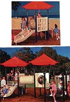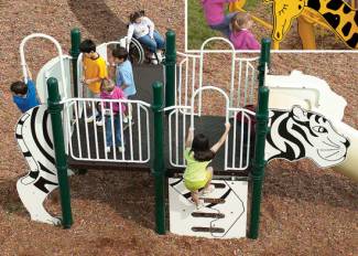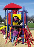Count on us for spacious playground systems with superior safety standards. Port Clinton features six slides and a variety of climbing options.