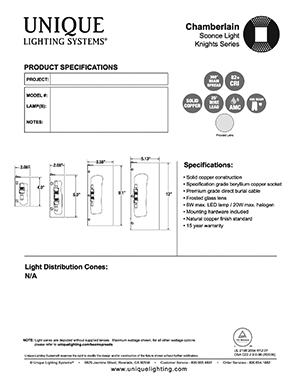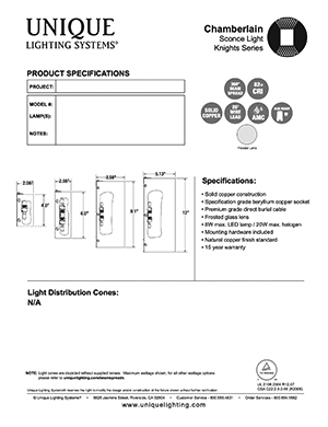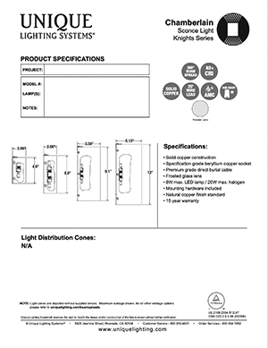 Designed to eliminate the glare associated with glass porch light fixtures, the Chamberlain series directs light output in an up/down beam spread. The copper body construction makes these fixtures durable and efficient. The Chamberlain 9 and 12 are available in both low voltage and high voltage versions. Available in 4 inches, 6 inches, 9 inches or 12-inch heights, these wall sconces carry a 15 year Warranty.