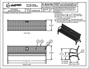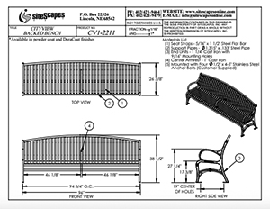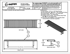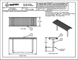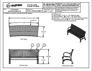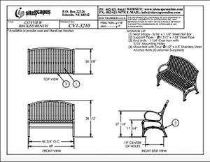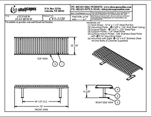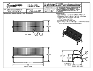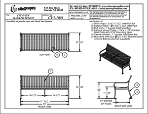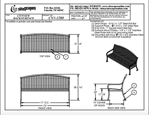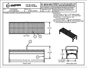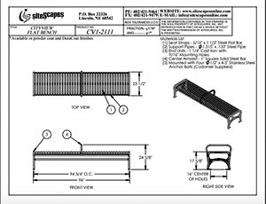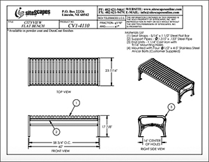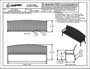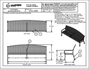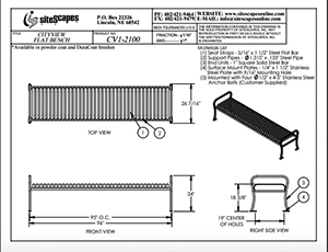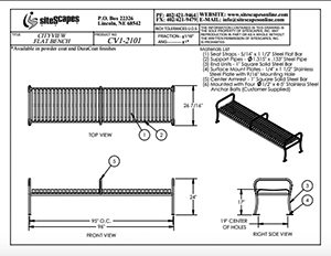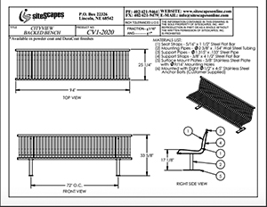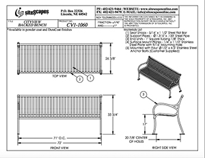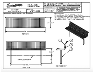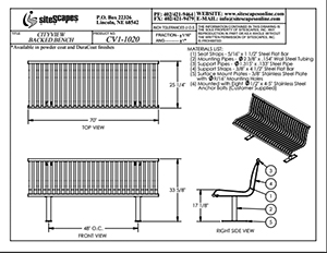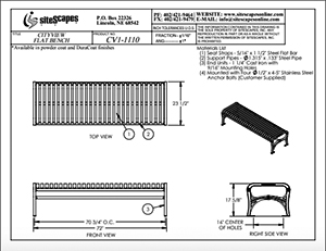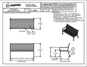 The CityView CV1-1000 is SiteScapes standard bench. This bench incorporates steel bar ends and vertical straps into its backed bench design. This bench is heavy duty and stands up to any enviroment. Delivered as a fully assembled, rigid welded unit, this bench bolts directly to a concrete pad for permanent installation and is virtually vandal resistant.