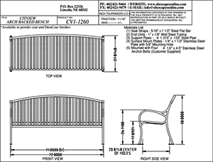 CityView 6 ft. Arched Back Bench with Steel Bar Ends CV1-1200