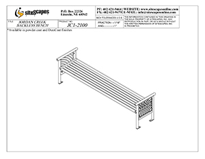 The backless JordanCreek bench utilizes elegant end patterns that are laser-cut and rigid square tubing giving it both the durability and aesthetic needed for any site.