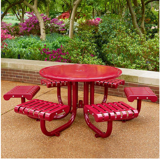 while preventing theft & keeping things neat. Offering your choice of 3 styles & 4 configurations. All steel construction & a thick plastisol coating on seats & table tops mean surfaces remain cool to the touch, even in the hot sun.
