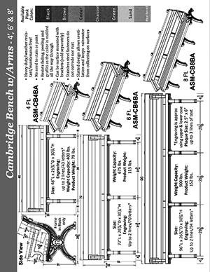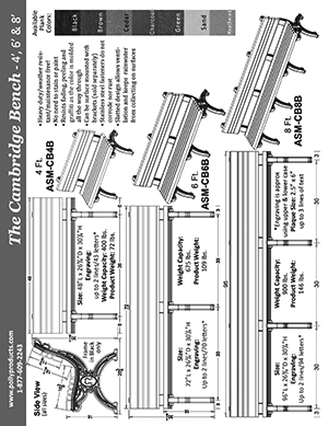 Our signature Cambridge Bench combines function, comfort and style to create a durable, yet elegant park bench. The decorative Green-Scapes bench frames have the appearance of classic black cast iron but are molded from solid recycled plastic. Made from 100% recycled plastic and comes with a 20-year warranty.