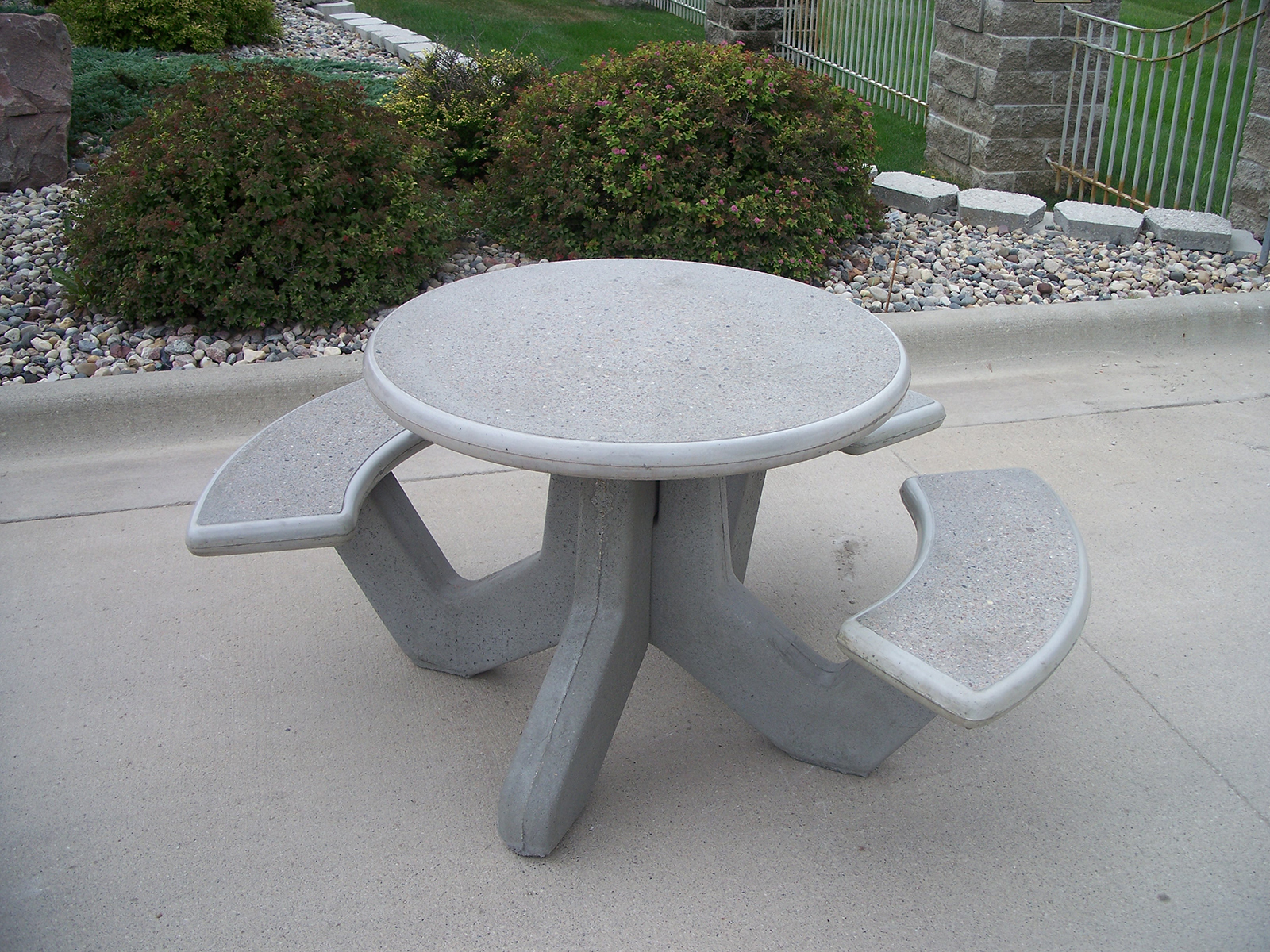 R-OTS precast concrete table is a beautiful way to provide durable outdoor seating that is virtually weather resistant. Available in a variety of colors and finishes.