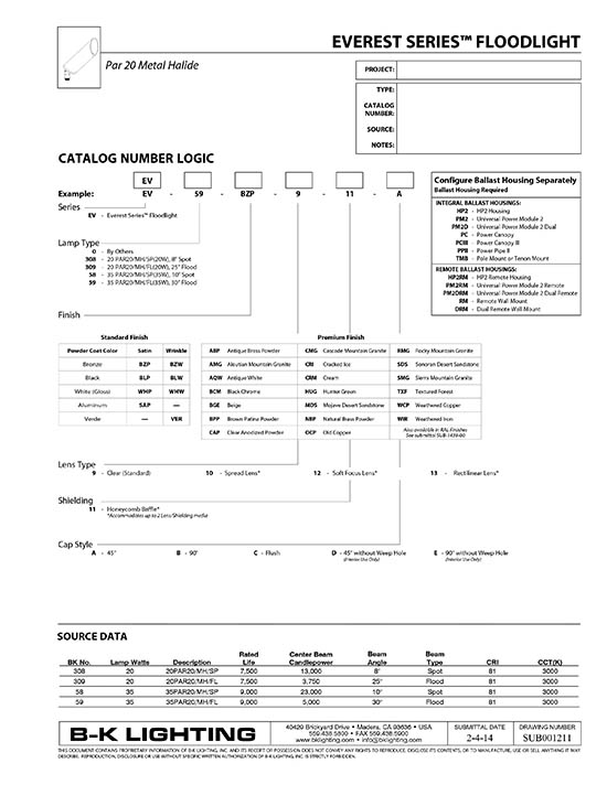 Everest Series™ PPll Metal Halide PAR20 Specs & Ballast Housing