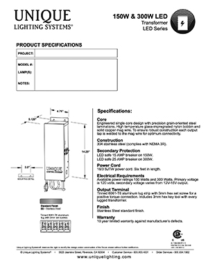 Unique Lighting Systems is expanding its outdoor transformer offering to include a new, full-featured low wattage transformer. The 150 Watt Transformer is designed specifically for LED outdoor lighting applications.