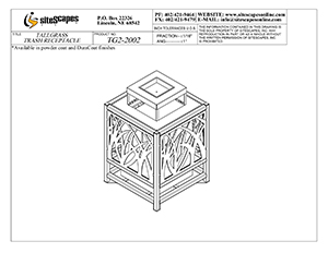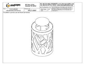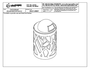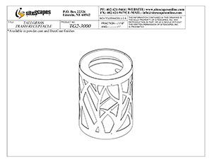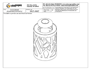 The TallGrass small round waste receptacle is a top opening trash receptacle designed for areas requiring space efficient waste containers. TallGrass receptacles include natural grass pattern laser cut panels into their design and are a beautiful way to collect waste.