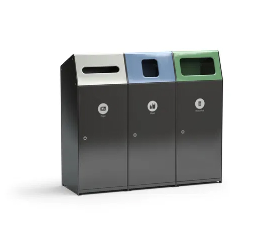 Acceptor is our smart modular waste-sorting system that can easily be adapted for an increased number of sorting options. The different openings come in optional colors to encourage and facilitate waste sorting, and the receptacles are easily emptied by opening the door and removing the bin bag. The Acceptor is easy to empty by opening the door and removing the bin bag, with no heavy lifting required.