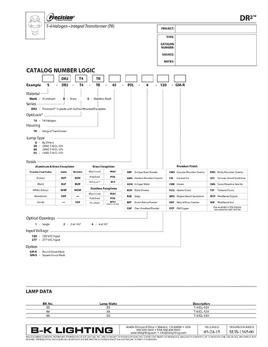 DR2 Series Ingrade Integral Transformer Halogen T4 Specs