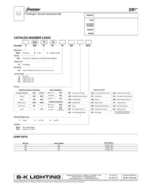 DR2 Series Ingrade Shallow Transformer Halogen T4 Specs