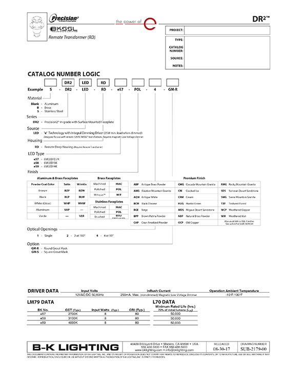 PRODUCT DESCRIPTION DR2 Series Ingrade Deep Remote Transformer Solid State BKSSL