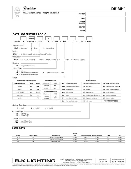 DR2MH Series Ingrade Integral Ballast Metal Halide T4.5T6 Specs