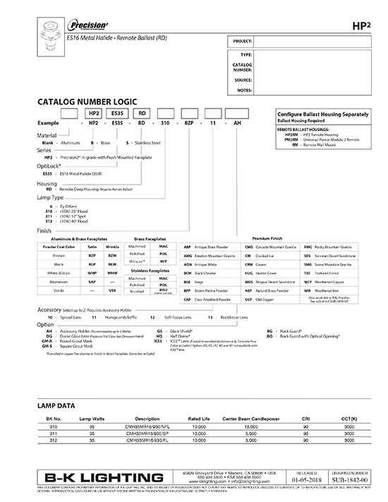 HP2 Series™ Ingrade Remote Ballast Deep Housing Metal Halide ES16 Specs & Photometrics