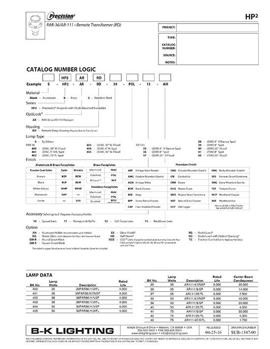 HP2 Series™ Ingrade Remote Transformer Deep Housing Halogen AR111PAR36 Specs & Photometrics