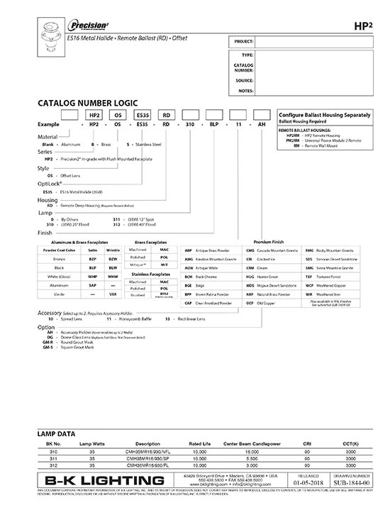 HP2 Series™ Offset Ingrade Remote Ballast Deep Housing Metal Halide ES16 Specs & Photometrics
