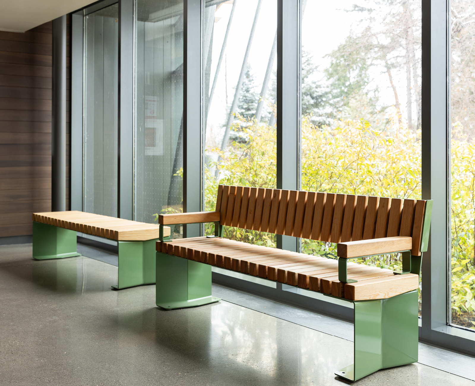 Reimagine park seating with clean lines, premium materials in Thermal Wood and Metal, and modern mounting options for today's streetscapes, parks, and public spaces. 870 Benches are available with and without a backrest, and can be installed wall-mounted, cantilevered and surface mounted.