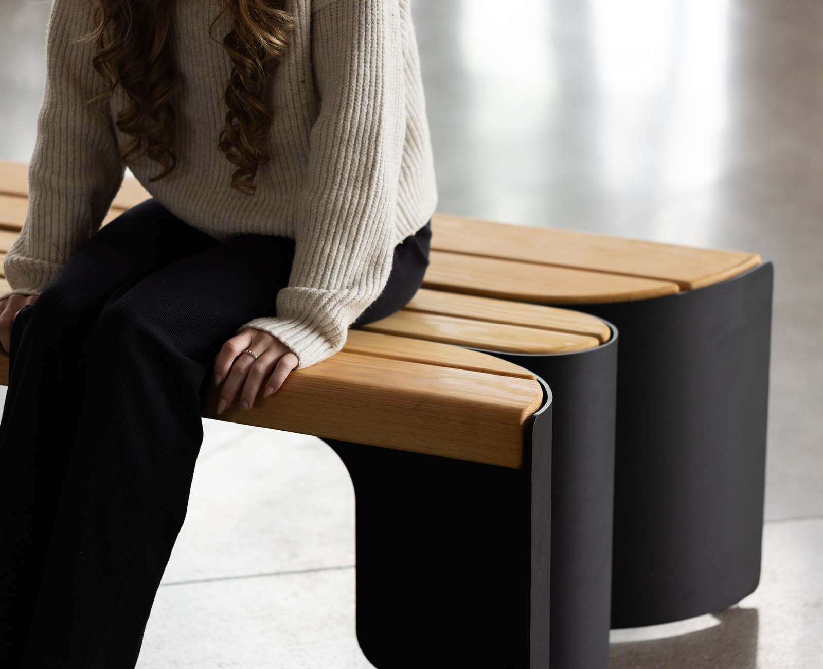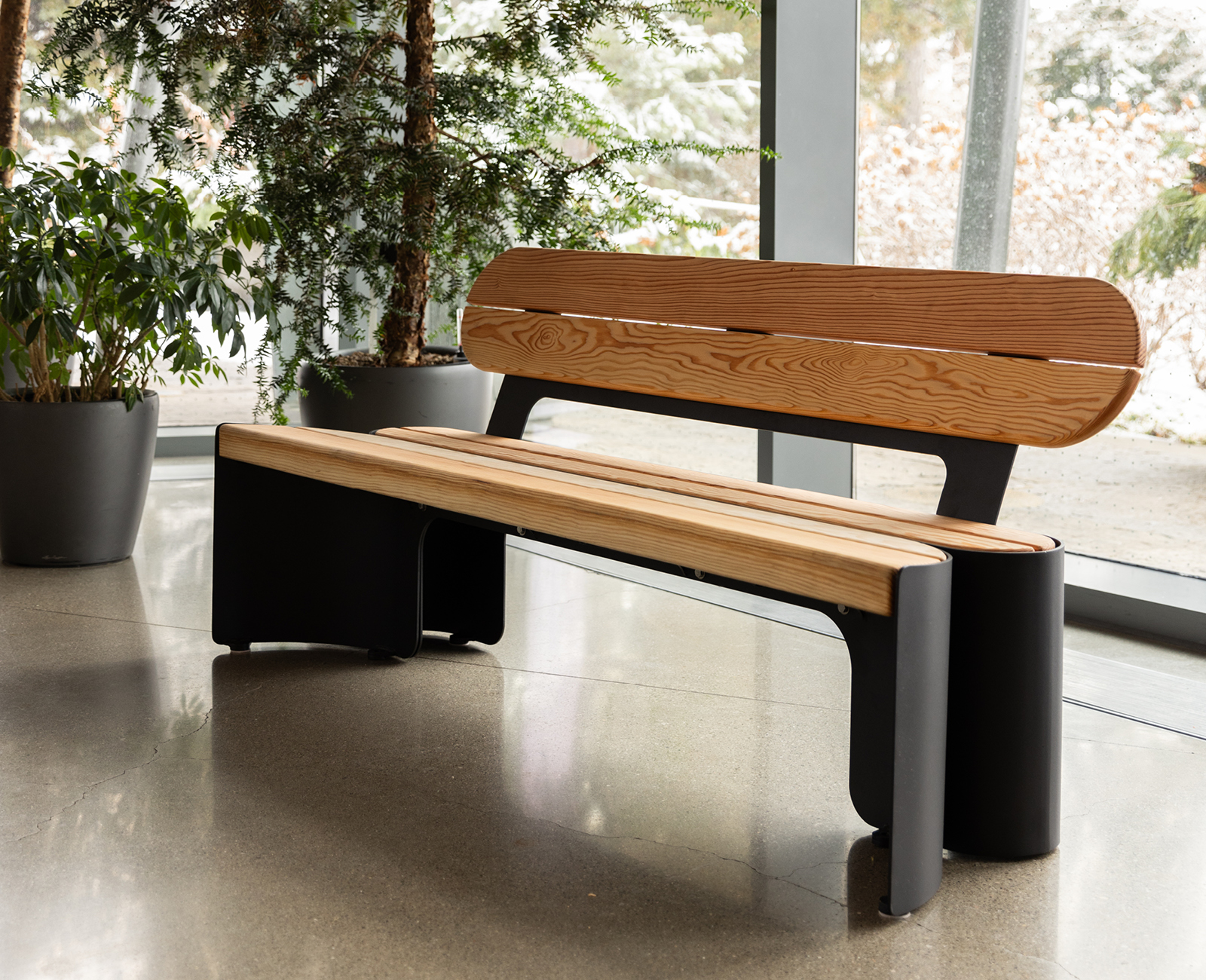 Contemporary design finds its natural rhythm in the Floe Bench Series—a thoughtfully balanced seating solution where large-profile Douglas Fir wood relaxes into fluid, supportive forms.