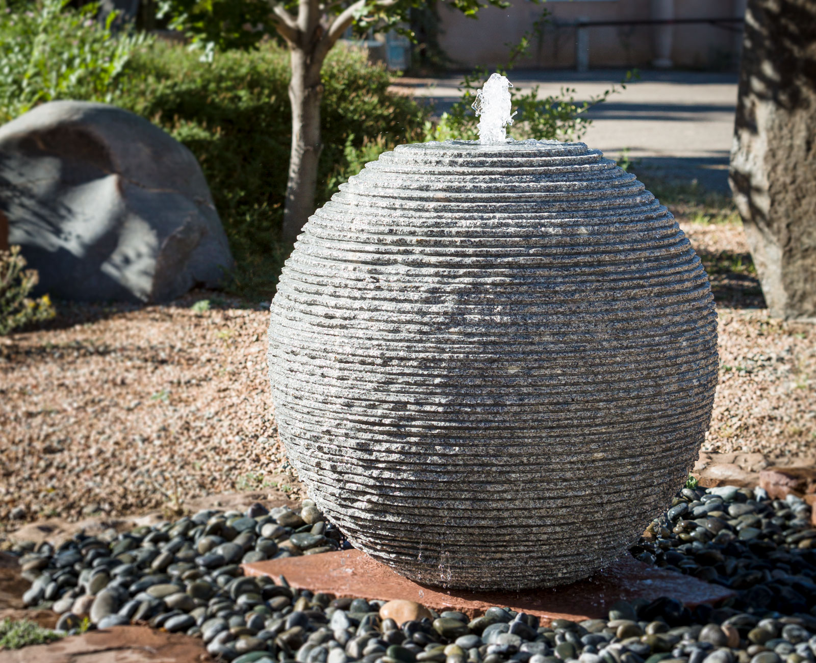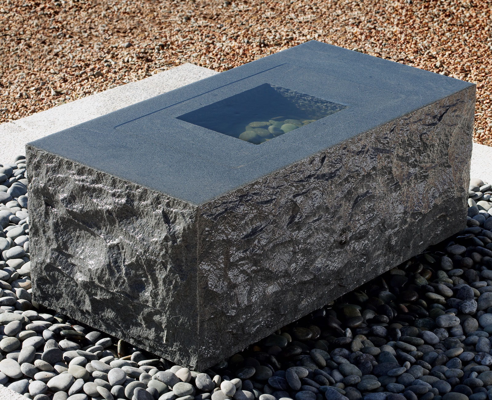 The Water Table Fountain is carved from a large block of Grey Granite. The top is polished while the outside is rough chiseled