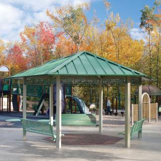 POLIGON designs engineers and manufacatures the largest variety of tubular steel shelters gazebos and pavilions in the industry. As the most specified shelter with national architectural firms POLIGON offers over one hundred original designs from small shade structures to large pavilions spanning over 100 feet. Standard offerings include bolt-together frames three different roof systems and a wide selection of vibrant powder coat finishes. We also have custom capabilities to help you create the appropriate building for your site.