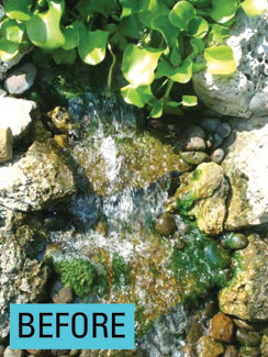 Here is some information on additional water features that will keep your water clear and glistening, and not looking like a misbegotten fishtank.