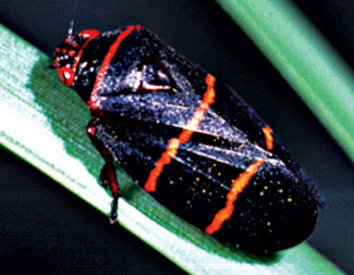 Common Name(s): Twolined Spittlebugs Scientific Name(s): Prosapia bicincta Crop Hosts: All turfgrass species, with centipedegrass being the most susceptible. Adults also feed on ornamental plants, especially hollies. Identification and Life Cycle: Adult twolined spittlebugs are black with red eyes and legs and have two orange stripes across their wings. They are about 1/4 inch long. The nymphs are yellow or creamy in color with a brown head). They are surrounded by a mass of white frothy spittle that they excrete for protection. Both adults and nymphs suck juices from the grass with their piercing-sucking mouthparts. But, damage is caused primarily by the adults through the injection of phytotoxic salivary substances. Adults are most active in early morning and hide near the soil surface during the heat of the day. Affected Areas: Florida, and surrounding Southern States. Shortwinged Mole cricket Affected Areas: Shortwinged Mole cricket, Southern Mole Cricket, Tawny