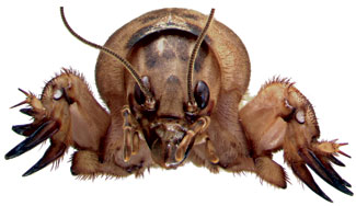 Scientific Name(s): Scapteriscus abbreviatus Scudder, Scapteriscus borellii Giglio-Tos, Scapteriscus vicinus Scudder, Insecta: Orthoptera: Gryllotalpidae Crop Hosts: Feeds on turf, as well as animal and plant material. Identification and Life Cycle: The southern and tawny mole cricket are quite similar in appearance and biology. The shortwinged mole cricket differs in appearance because of the short wings, but also in behavior because it has no calling song and the short wings render it incapable of flight. Typically, the eggs of these three species are deposited in April-May, and nymphs predominate through August. In southern Florida, however, the shortwinged mole cricket can produce eggs throughout the year. Beginning in August or September some adults are found, but overwintering occurs in both the nymphal and adult stages. Maturity is attained by the overwintering nymphs in April, and eggs are produced at about this time. A single generation per year is normal, though in southern Florida there are two generations in southern mole crickets and an extra peak of adult flight in the summer, resulting in spring, summer, and autumn flights from the two generations (Walker et al. 1983). In both southern and tawny mole crickets, adult emergence occurs earlier in southern Florida than in northern Florida. Affected Areas: Florida, Georgia, North Carolina, South Carolina, Alabama, Louisiana, Texas, and Arizona