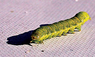 Common Name(s): Armyworms Scientific Name(s): Noctuidae of the order Lepidoptera Crop Hosts: Many vegetables, agronomic crops and grasses. Prefer to feed on foliage but may attack the stems, fruit or even tubers of certain host plants. Identification and Life Cycle: The moths known as armyworms belong to the family Noctuidae of the order Lepidoptera. The family name refers to the nocturnal nature of the adults. While the adult stage causes no direct damage, the immature worm stage feeds, often voraciously, on plants. They are active from spring until fall. Most armyworms go through five larval stages within 14 to 21 days (species and temperature dependent). As they grow, their ability to consume plant tissue increases and they can chew large holes in leaves or strip an entire plant. After maturity the worms move to the soil, dig to about 1” deep, and pupate. After seven to 14 days, they emerge as adults. The entire life cycle ranges from 24 to 36 days, with an average of 28 to 30. In warm climates there can be many generations per year, usually peaking June through September. Affected Areas: Southeastern US