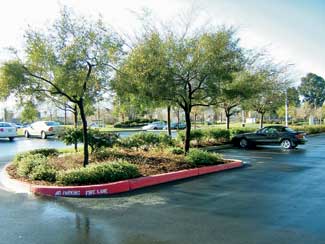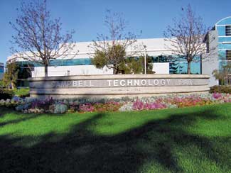 Located on the site of an old drive-in movie theater, Campbell Technology Park is a complex of buildings providing office spaces for hi-tech companies of the Silicon Valley. Parking lots contain extensive trees for shade during the hotter months as well as dense plantings to compliment the buildings. A fitness course is interwoven into the landscape and ties to the adjacent park. Fountains were designed at two of the building entries to add interest as well as provide soothing noise that helps mask the sound of the nearby freeway. Adjacent to the fountains are seating and gathering areas for workers on break, at lunch, or meeting outside.