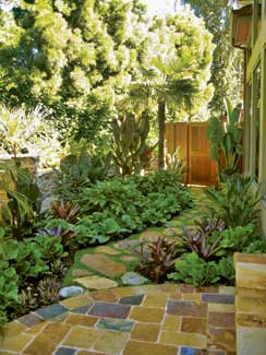 Recreating the open feeling of a Mediterranean country garden, this Spanish/Italian mix was dubbed Spitalian. Much of the hardscape, was removed, the pool was remodeled and a large pavilion with fireplace was installed. A front parking court was turned into a walled garden entry with a colorful tile fountain, a small grape vineyard, as well as gravel and travertine patios. A substantial portion of the property was also replanted with colorful shrubs, perennials, and succulents.