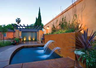 Situated in the middle of downtown Sacramento, Plaza 26 is an oasis of comfort and elegance. What was once a run-down rental complex has been transformed into a gem of the community. The property has three buildings with two rental units each for six units with a common rear landscape. All of the architecture and interiors were stripped down to the wood framing and rebuilt with materials and colors to create an upscale urban feel. The common space is designed for the residents to relax and entertain in style. A ?EUR??,,????'??dipping?EUR??,,????'?? pool with a three-tier water feature is the focal point of the space. A built-in barbeque and trellis-covered seating area frame the pool. The landscape and outdoors can also be enjoyed at night thanks to the two gas fireplaces and outdoor lighting.